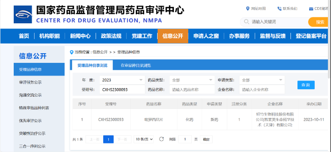 轩竹生物在研1类新药吡罗西尼(Birociclib, CDK4/6(细胞周期依赖性激酶4/6)抑制剂)的新药上市申请(NDA),获得中国国家药品监督管理局受理。
